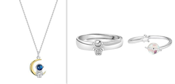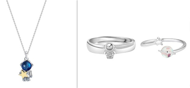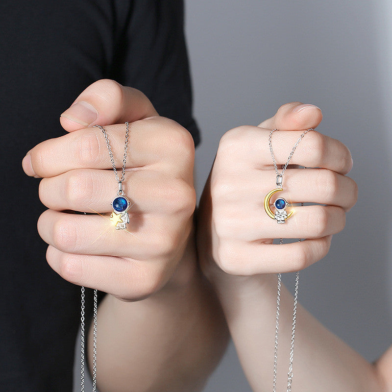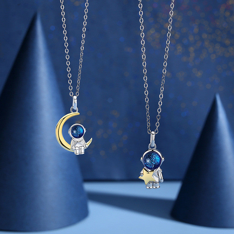 Astronaut Sterling Silver Couple Necklace Male Clavicle Chain